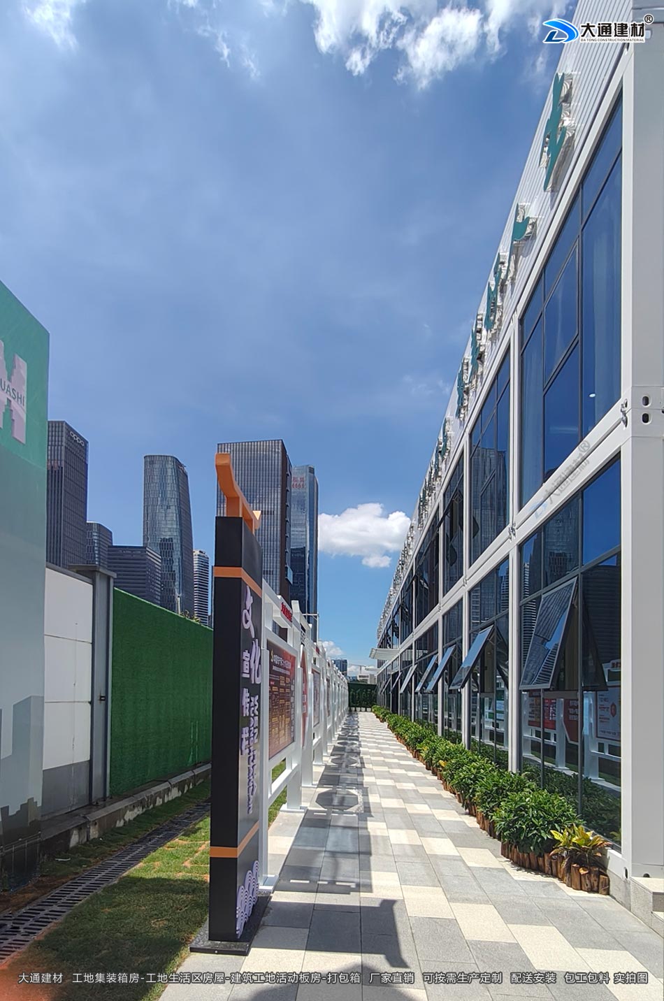 工地辦公區(qū)板房-工地集裝箱房屋-活動(dòng)板房工程案例-打包箱-深圳市大通建材有限公司鋼圍擋生產(chǎn)定制廠家