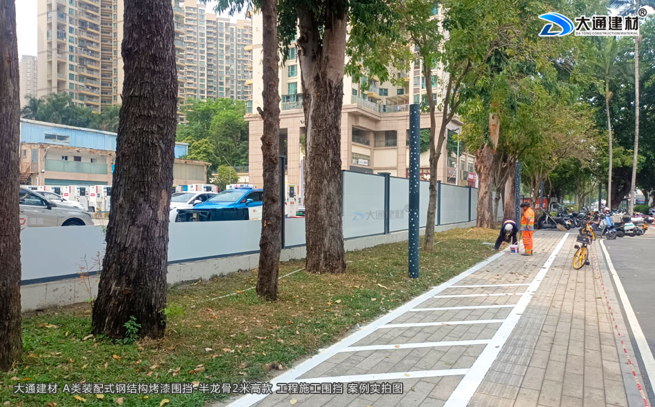 深圳城市建設(shè)城區(qū)改造工程項目選用大通建材2米高裝配式圍擋烤漆A款,具有結(jié)構(gòu)牢固、可抗臺風(fēng)、可回收循環(huán)利用、美觀、環(huán)保等特點,是目前業(yè)內(nèi)倍受喜愛的圍擋之一。