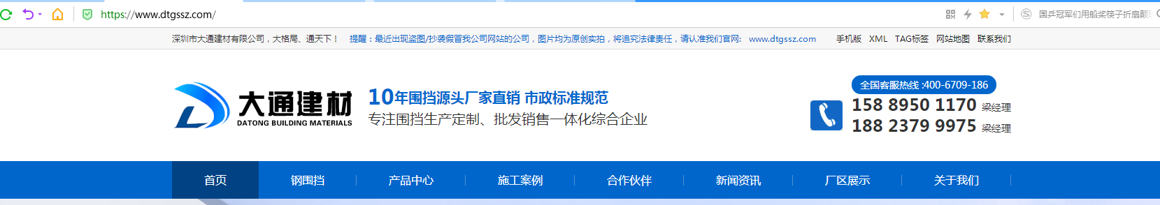 用戶進入大通官網,可以看到在官網右上角就有負責圍擋銷售負責人的聯系電話,用戶可以直接電話與銷售負責人溝通 說出自己具體的需求產品即可獲取相應的圍擋價格
