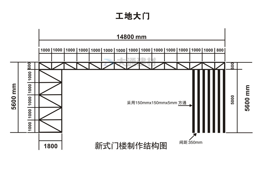 深圳市大通建材施工工地大門/工程建筑項目大門 實拍案例:標準化工地大門樣式示意圖